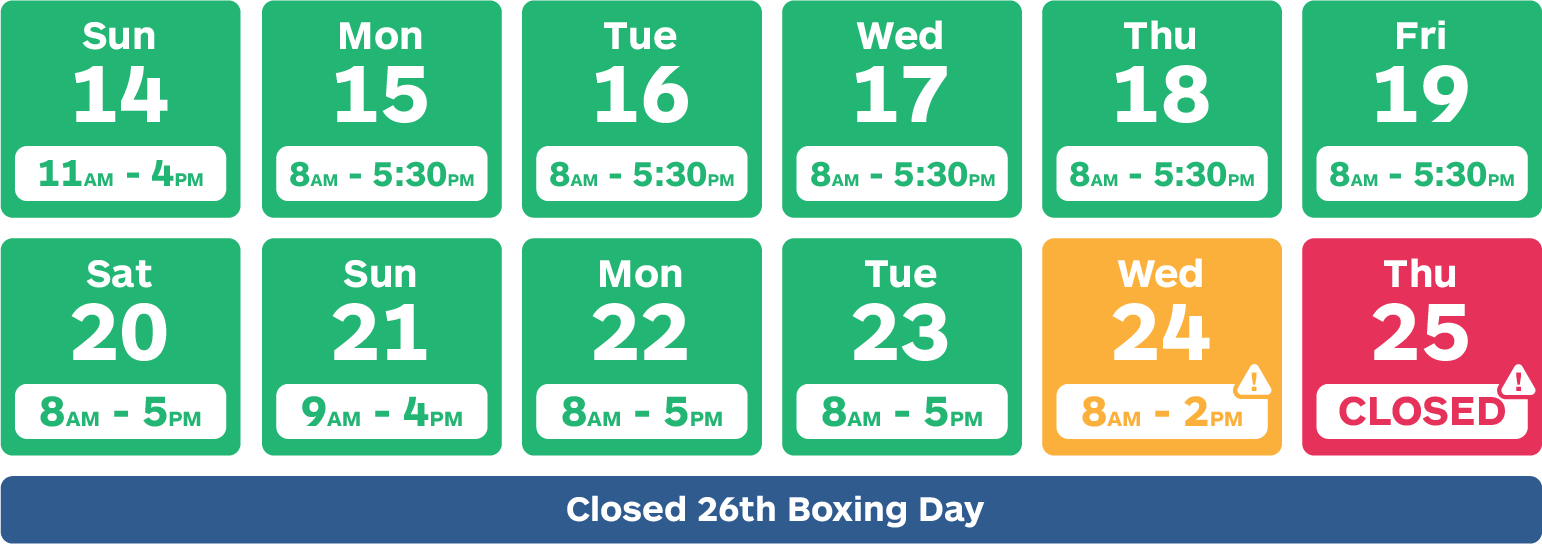 Friday 26th Boxing Day CLOSED